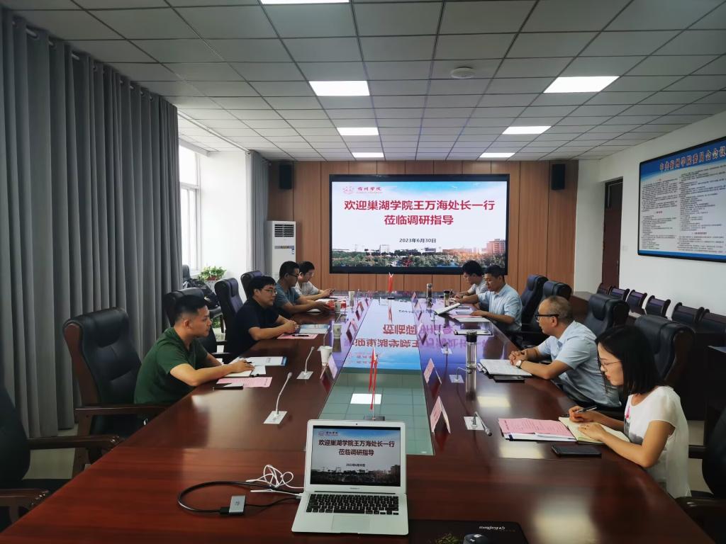 为共同推进学习贯彻习近平新时代中国特色社会主义思想主题教育走深走实,6月30日上午,巢湖学院国有资产管理处处长王万海一行4人来我院调研交流。我院国有资产与设备管理处处长王北阳、副处长孙善辉及相关工作人员参加了调研座谈。
