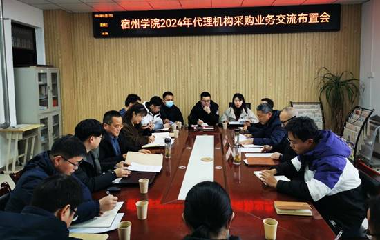 2024年1月17日,国资处在逸夫楼314会议室召开了“宿州学院2024年代理机构采购业务交流布置会”,国资处处长王北阳、各代理机构负责人以及国资处相关人员参加会议。会议由国资处副处长孙善辉主持。