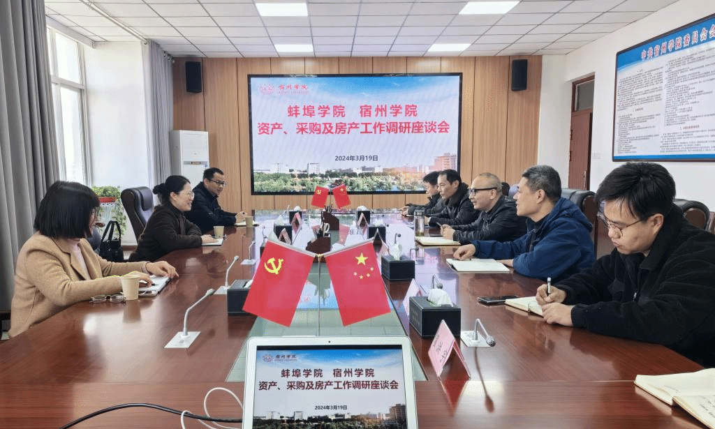 业红玲对我院国有资产管理制度体系、采资管理一体化平台建设表示了赞许,并分享了蚌埠学院国有资产管理等方面的做法和经验。随后,双方对房产管理相关制度建设情况、周转房管理的做法、采购和资产管理信息化建设等方面交流了经验,通过调研交流,双方就业务中遇到的新情况、新问题进行了深入探讨,相互汲取了工作经验,增进了兄弟院校感情。